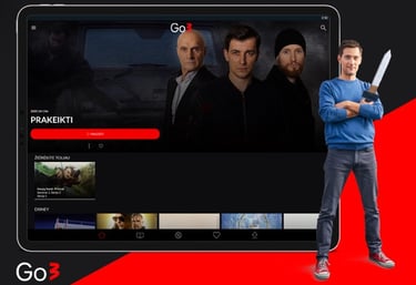 Pievienojieties Go3 jau šodien un izbaudiet 30% atlaidi mūsu TV un filmu plānam. Piekļuve 37 kanāliem, vairāk nekā 2200 filmām un ekskluzīvam saturam tikai par €9,79/mēnesī 3 mēnešus ar atlaides kodu CONSULTINGWEB30.